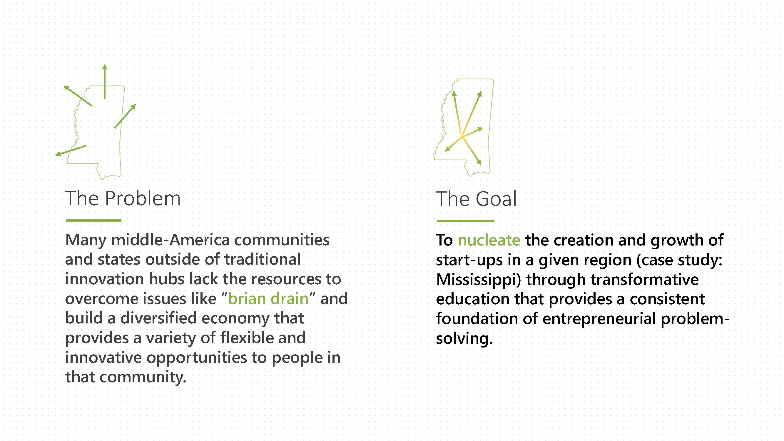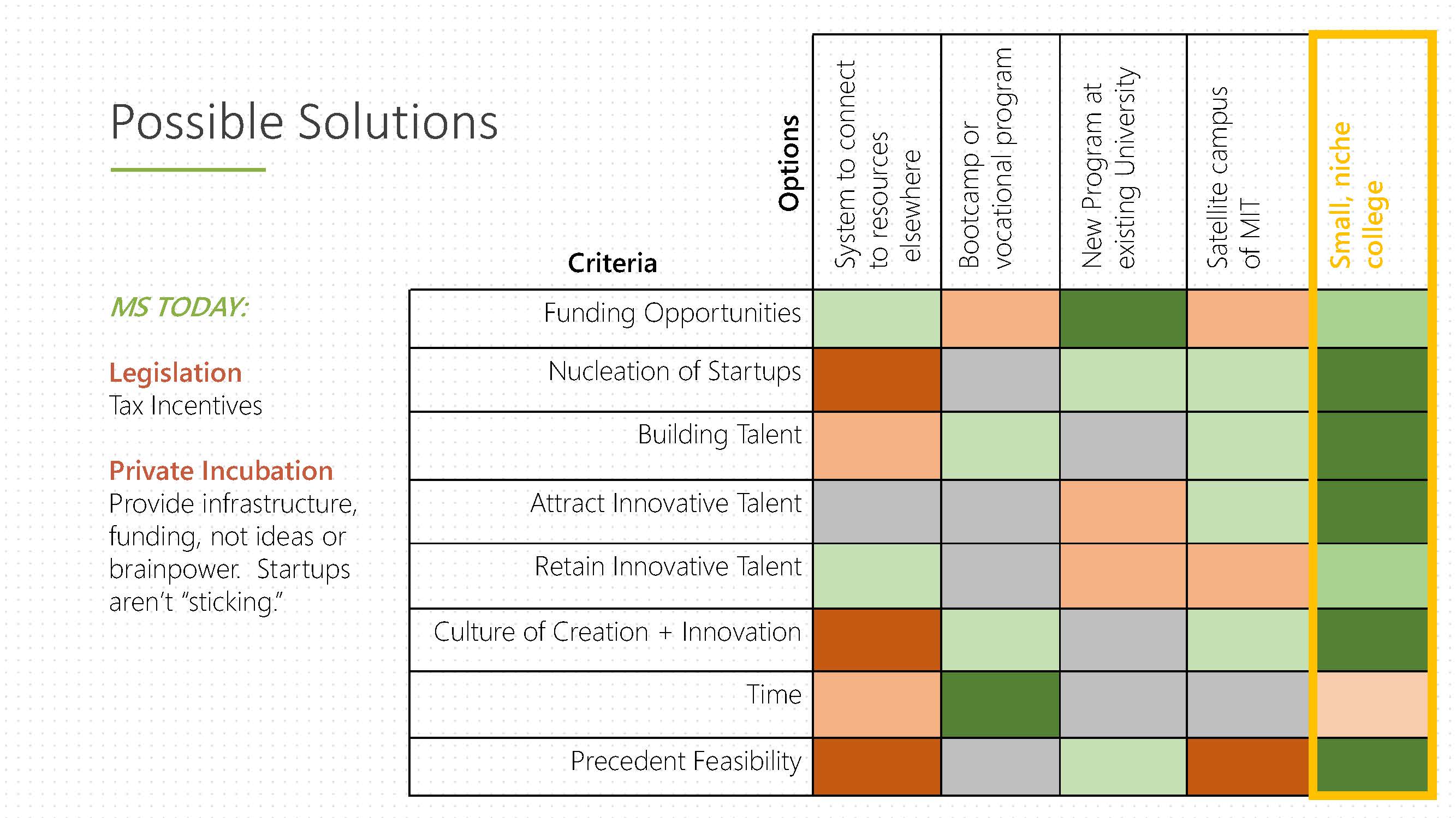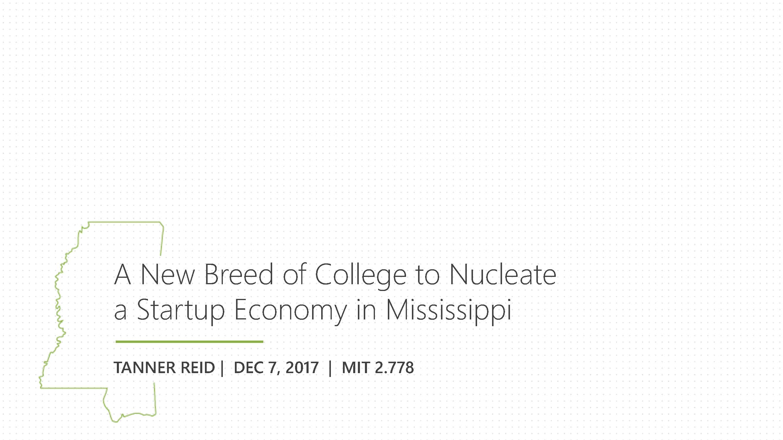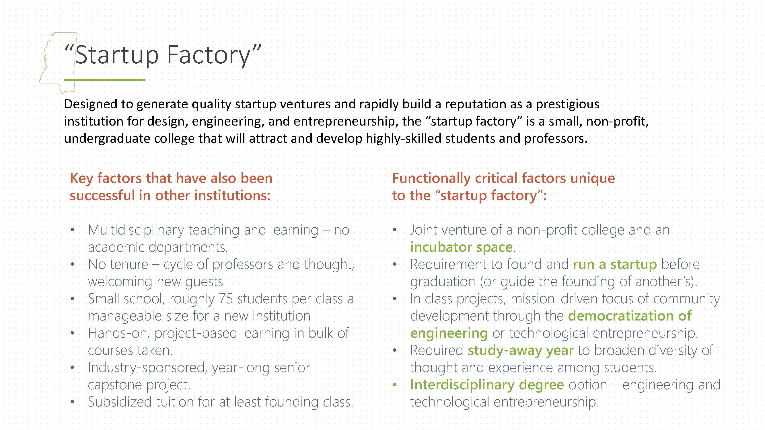 As part of a systems engineering course in MIT’s Mechanical Engineering Department, I utilized a model similar to my alma mater, Olin College, to design an institution to catalyze a startup economy in Mississippi — one of the U.S.’s most entrepreneurial, but underserved, regions.