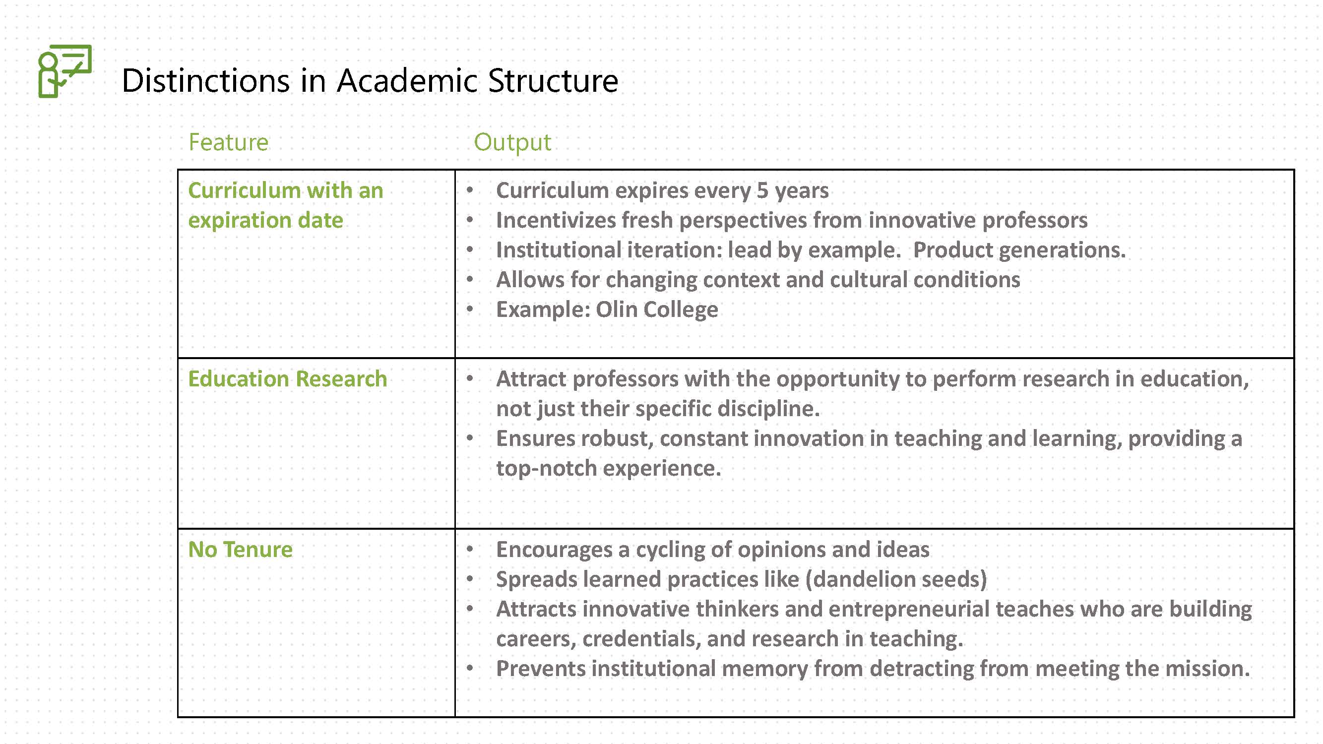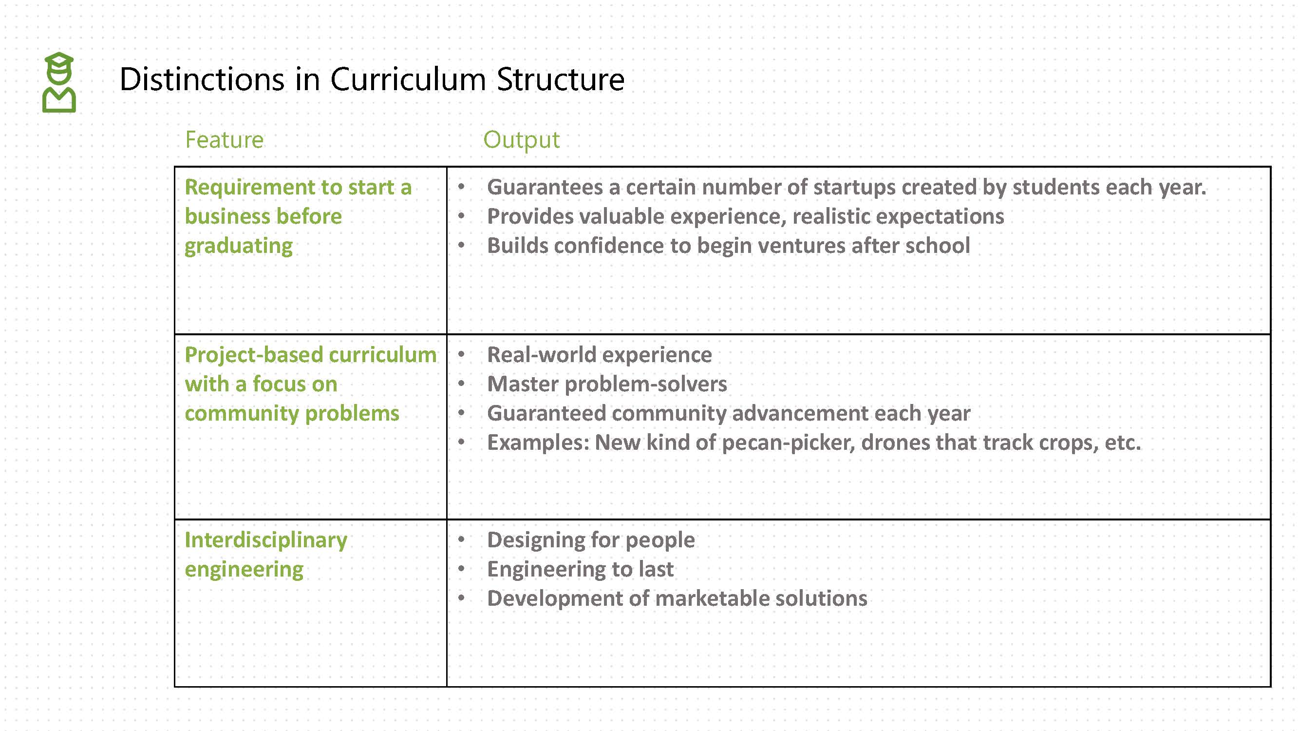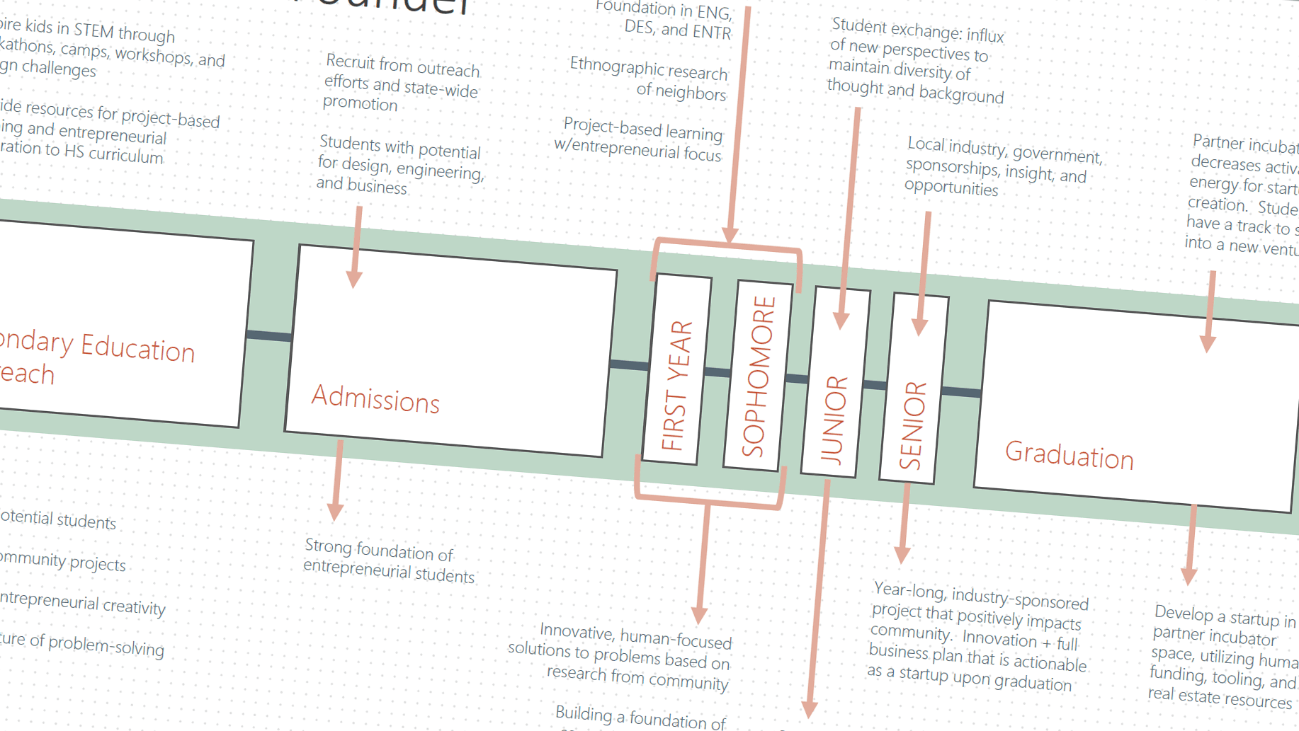 This “Startup Factory” is a mission-driven charter college that merges engineering, design, and entrepreneurship into a project-based curriculum. Grounded in systems thinking, the model tackles economic stagnation and "brain drain" by requiring every student to launch (or co-launch) a startup before graduation—each venture directly addressing local community needs. The proposal integrates organizational design, educational theory, and regional economic strategy to seed sustainable, founder-driven innovation from the ground up.