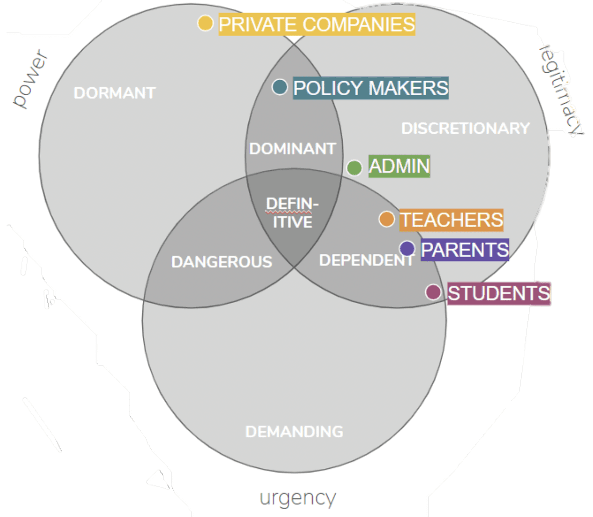 Analysis of United States k-12 stakeholders began by researching needs and values of key entities, both internal and external.