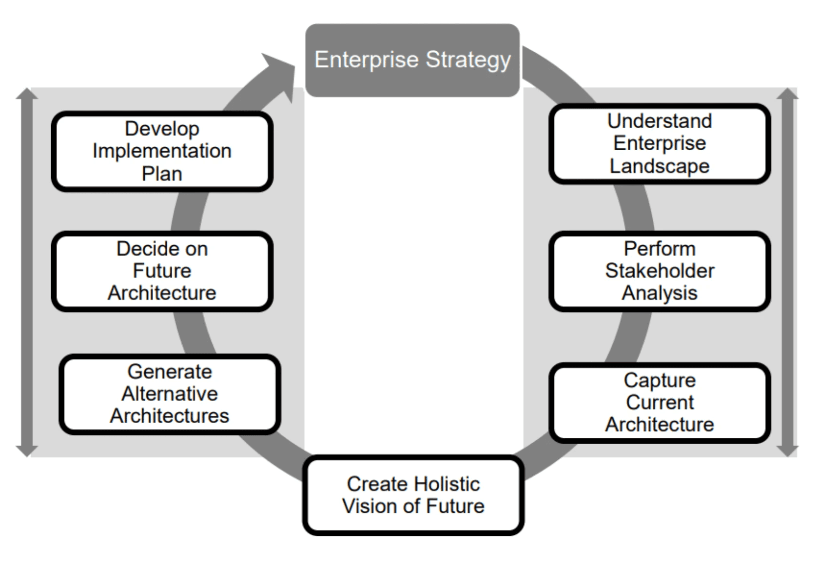 A variation of the ARIES* framework (below) was employed for systems architecting in a way that would develop an enterprise structure that would be more likely to produce qualitative, human-centric research, data, and sharing infrastructures. The framework was adjusted from the original presented below, reversing the steps of "stakeholder analysis" and "capturing current architecture."