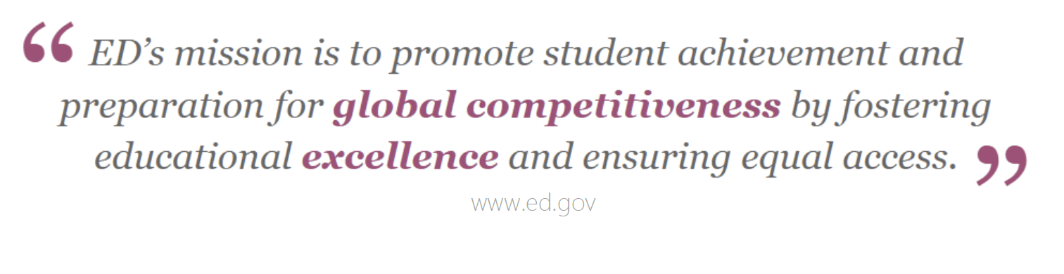 High-level organizational chart for the United States Department of Education (2019), with R and D highlighted by author to indicate the equivalent of Research & Development organizations common in private industry.
